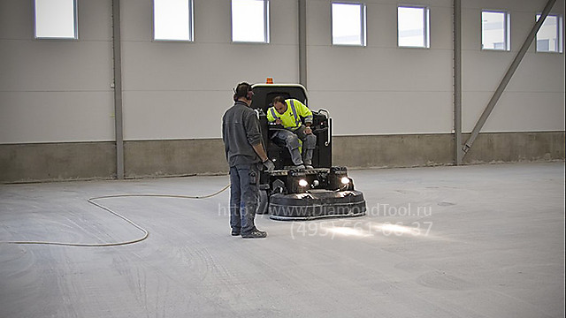 • Шлифмашина по бетону с местом для оператора как для больших, так и для маленьких площадей.