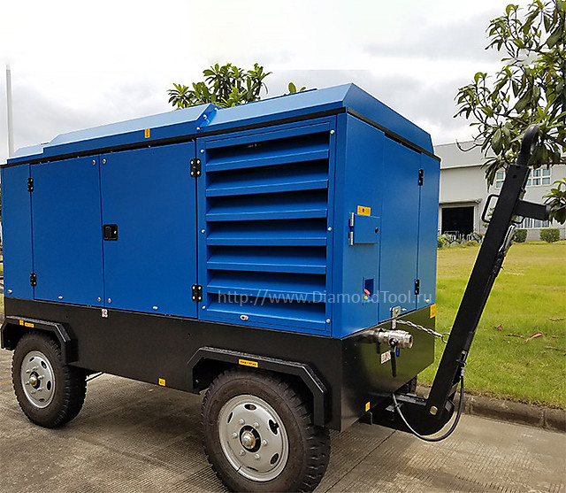 Компрессор оснащается дизельным двигателем Cummins мощностью 194 кВт. Максимальная производительность составляет 23,5 м3/мин, количество оборотов двигателя - 2200 об/мин..