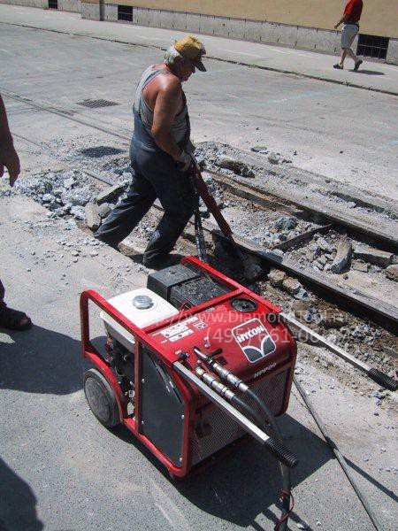 расходом топлива и малым весом. Поэтому она может транспортироваться в любом автомобиле и подходит для использования в любых условиях. Стоимость комплекта: гидравлическая станция и гидравлический отбойный молоток, меньше стоимости компрессора на 25 л.с. и отбойного молотка при одинаковой производительности. Встроенная система индикации уровня масла в