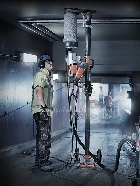 Легкая и удобная установка для сверление кирпича и железобетона. Есть обычная и удлиненная опорная стойка 1650 мм. - Установка алмазного бурения Husqvarna DM 650