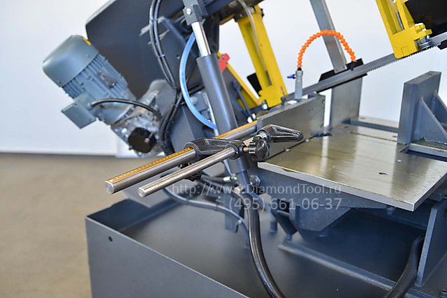 • Конструкция станка имеет отличительные особенности в зависимости от назначения модели (второй гидроцилиндр на опускание пильной рамы, гидравлический привод перемещения губок тисков в зависимости от положения пильной рамы, дополнительные вертикальные направляющие, автоматическая регулировка высоты подъема пильной рамы, педаль оператора и др.).