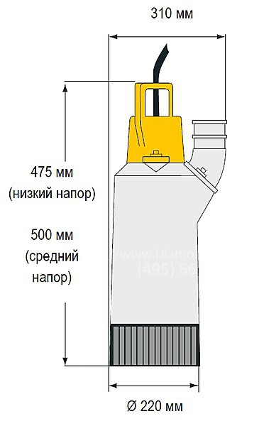Насос предназначен для перекачивания грязной воды с примесью на строительных площадках, коммунальными службами, в горно-шахтной промышленности и других применений. Класс защиты IP68.