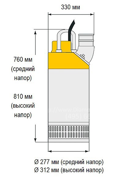 Насос предназначен для перекачивания грязной воды с примесью на строительных площадках, в горно-шахтной промышленности, при ликвидации последствий стихийных бедствий и других применений. Класс защиты IP68.