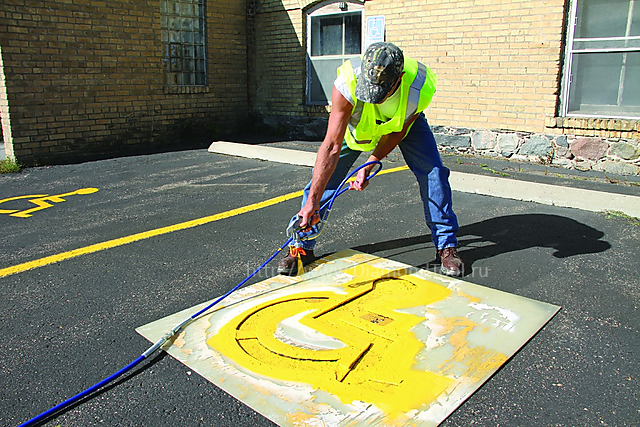- Электронный регулятор давления позволяет добиться высокого качества нанесения разметки.