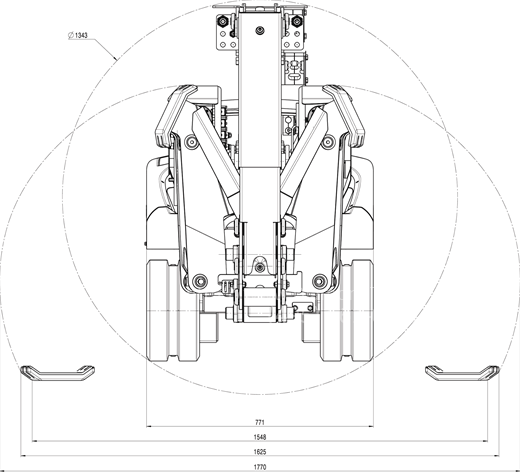 - Аутригеры робота индивидуально контролируются, что обеспечивает его устойчивость и позволяет работать на неровной поверхности или вблизи стен.