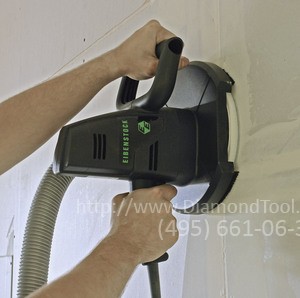 Ручная шлифмашинка Eibenstock ETS 225 для сухого шлифования штукатурки и шпаклевки на стенах и потолке, абразивными кругами диаметром 225 мм, что обеспечивает быструю скорость работы. Съёмная стенка кожуха позволяет работать вплотную к стенам, а это значительно ускоряет работу и область применения данного инструмента.