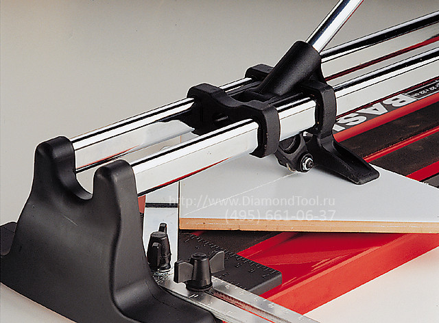 - Большой размер ручки облегчает резку плитки. Диаметр режущего диска 15 мм. Резать плитку можно с любой точки благодаря новой системе между колесом и режущей частью. Раздвижная каретка на овальных хромированных стальных направляющих для обеспечения высокой жесткости. Упор для диагональной резки регулируется от 45° до 90°, мерная линейка в сантиметрах и дюймах.