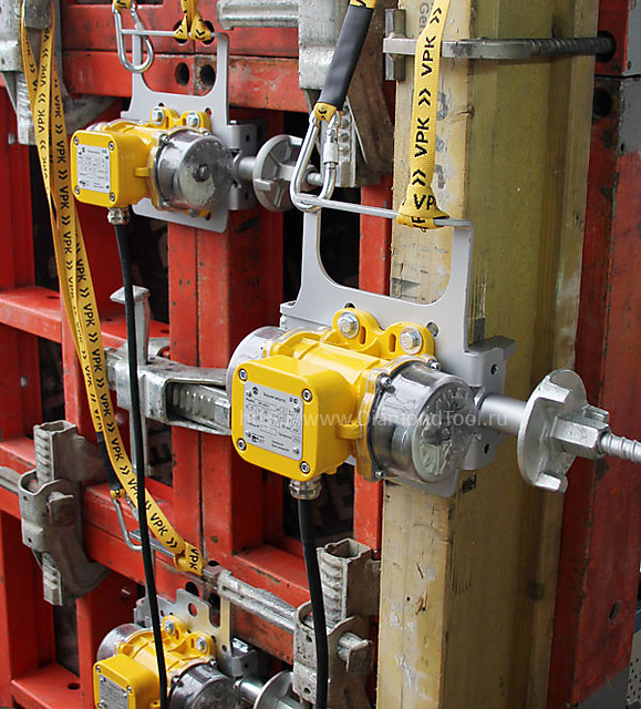 Мощный внешний высокочастотный вибратор VPK 6000/1 Formwork специально разработан для производства монолитных конструкций для получения гладких и ровных бетонных поверхностей стен, опор, колонн и др. Используется для уплотнения бетонной смеси в зонах с высокой степенью армирования, в местах, где использование глубинного вибратора является невозможным либо неэффективным.